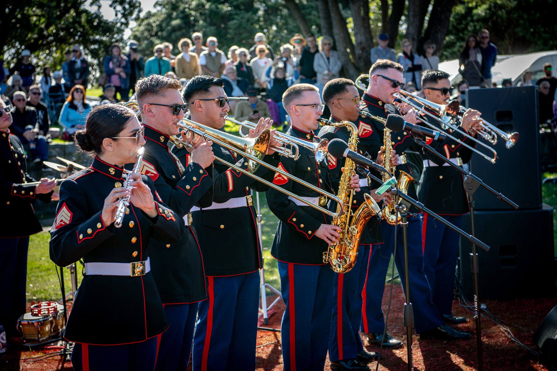 The US Marines Corps Forces Pacific Band Kicked off their third ANZAC Day visit to Paraparaumu by attending the dawn parade in Paraparaumu.