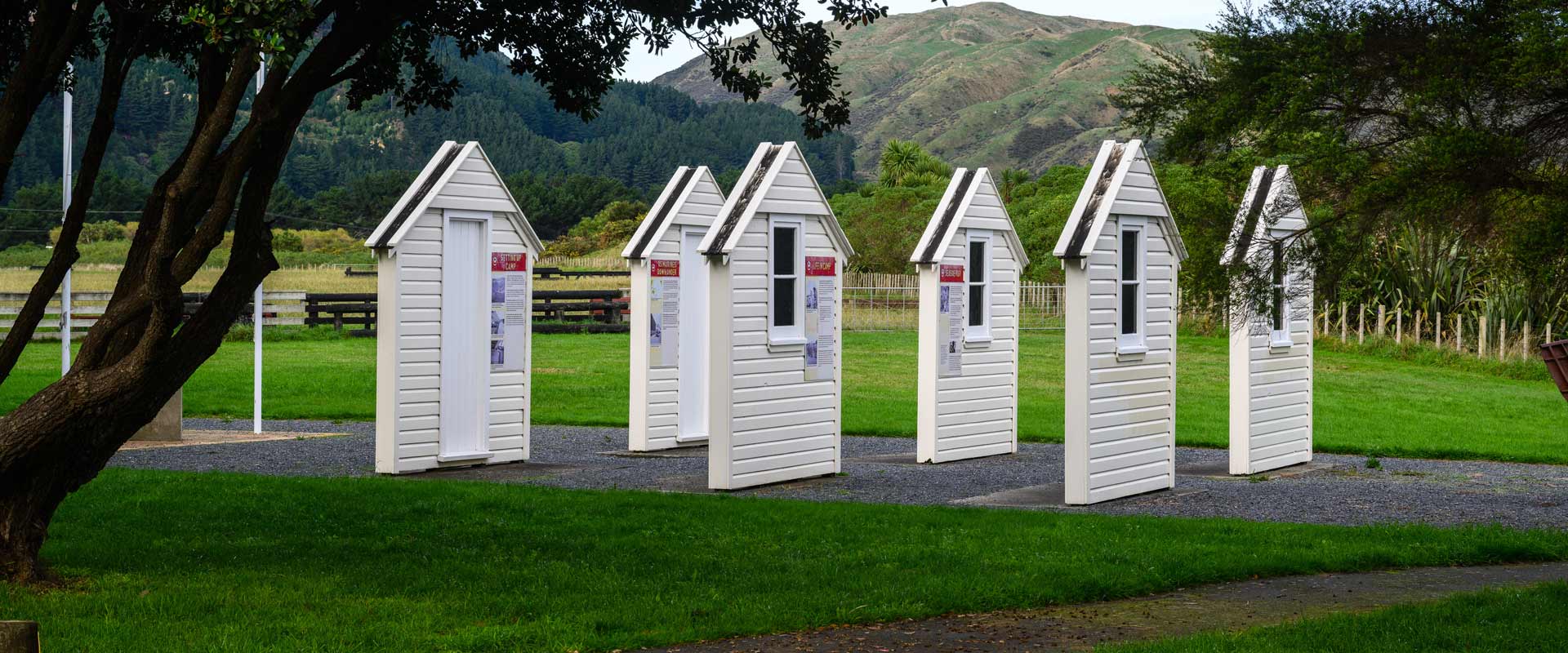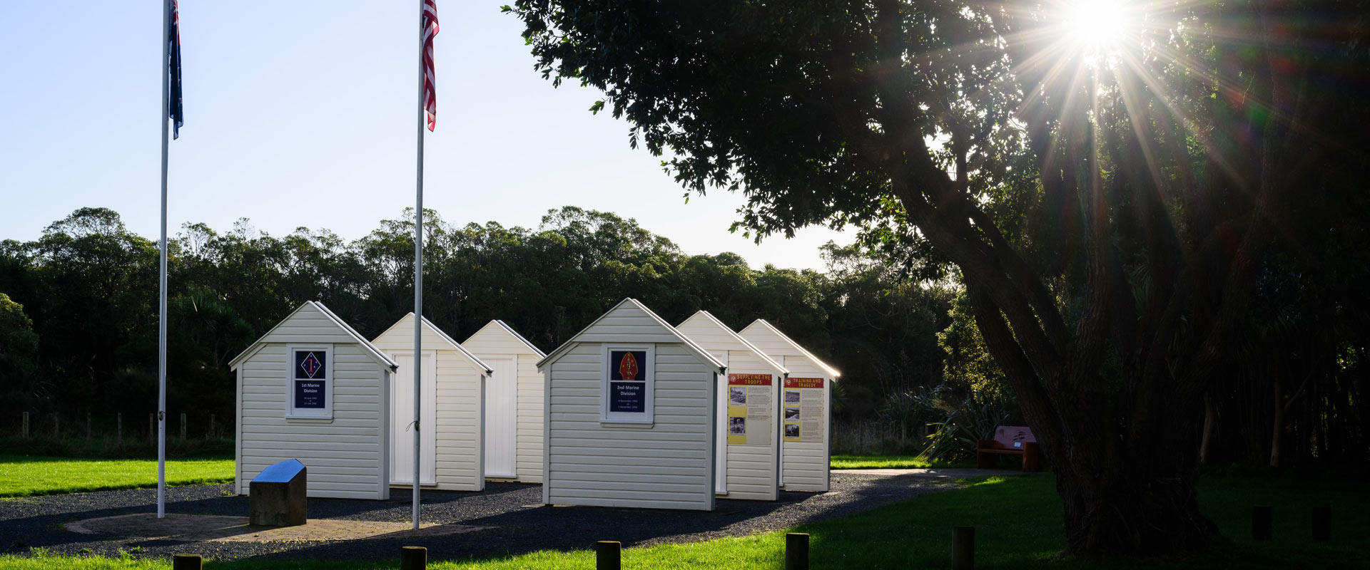 Photographs of the event show a bleak park site, with the hut facades in sharp relief against the surrounding hills and bare paddocks – a stark reminder of the look and feel of the Camp Russell back in the day. The pouhutukawa trees now framing the site were planted on the day.